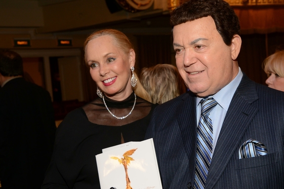 Виновники торжества сидели на роскошных стульях, напоминающих троны и принимали поздравления и пожелания долгих лет совместной жизни. Отметим, что со дня свадьбы артиста и его избранницы прошло уже 46 лет.