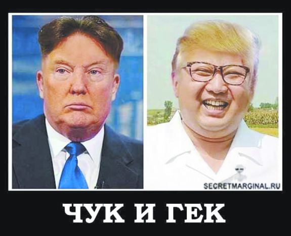 КАЗАЛОСЬ бы – вопрос дилетанта. Мол, лидерам двух ядерных держав всегда есть о чём поговорить. А вот и не о чем! Товарищ Данила Козырев, как в переводе с английского на русский звучат имя и фамилия американского президента и которому даже «Аргументы недели» готовы были стелить ковровую дорожку в Москву, оказался слабаком. Вместо того чтобы развить успех на выборах и выпотрошить старую политическую элиту, он «обделался» и начал показывать нам «козу» похлеще Обамы с Клинтоншей. Наобещал кучу новых санкций, грозит ядерной войной с нашим микроскопическим соседом – Северной Кореей. Попутно предал всех друзей, кто был с ним на выборах. То есть человек явно неадекватный.